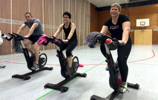 [jük] Auch in diesem Jahr war der ausgeschriebene Indoor-Cycling Einsteigerkurs binner weniger Tagen ausgebucht. Und so absolvierten am 09. Januar insgesamt 14 Cycling-Debütanten ihre erste Kursstunde mit den ungewöhnlichen Bikes. Kursleiterin Claudia Düppre erklärte den Sportlern die Kursorganisation und die grundlegenden Einstellungen an den Indoor-Bikes bevor es dann endlich los ging. Mittlerweile haben die Neu-Cycler bereits die zweite Kurssrunde "hinter sich gebracht" und nach der anfänglichen Anspannung bei den Teilnehmern, steht nun bereits der Spaß an der im Vordergrund. Aber bis zum finalen Abschluss am 08. Mai, der traditionell mit einem dreistündigen Marathon und dem Überreichen der Teilnahmezertifikaten endet, werden noch viele Schweißtropfen rinnen. Wir wünschen allen Teilnemern ganz viel Spaß und begrüßen alle herzlich in unserer ssv-Cyclingfamilie.